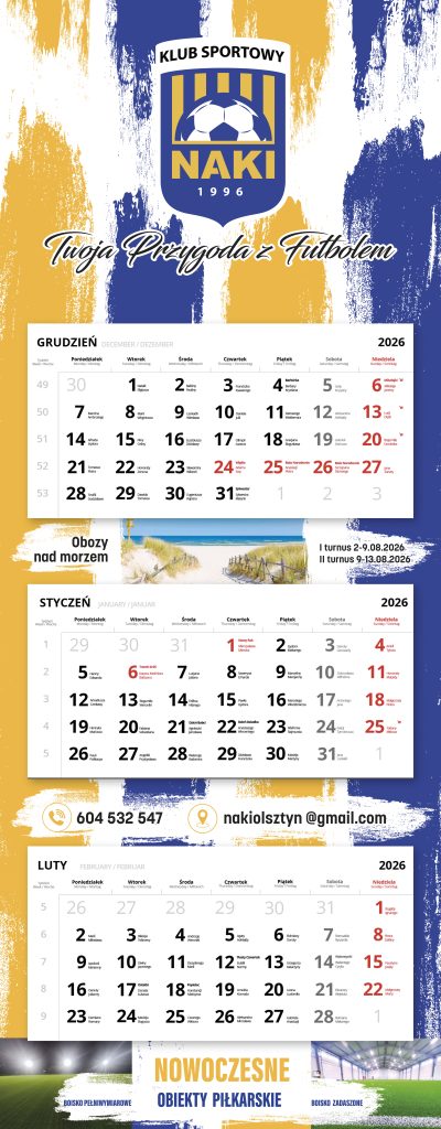 Można wspomóc ostatni już III etap budowy parkingu, by parkowało nam się lepiej (: Teraz zbieramy na III już ostatni etap, parking jest już w trakcie budowy i mieści się za nowo budowaną halą, czyli na samym końcu parkingu. Na ostatniej części parkingu będzie, aż 16 miejsc nowych, dodatkowych parkingowych !!! To znacznie rozluźni dotychczasowe parkowanie. W holu hali NAKI na stoliku umieszczona jest skarbonka, a koło niej naprawdę ładne w klubowych barwach, trzy częściowe kalendarze NAKI na rok 2026. Wrzuć 20 zł i weź kalendarz – samoobsługa. Wszyscy wiemy, że trzy częściowe są najlepsze i każdemu w domu lub w pracy się przydadzą. To, że słowa dotrzymujemy też powszechnie wiadomo. Rok temu również zbieraliśmy na II etap budowy parkingu i między innymi dzięki akcji – cegiełka kalendarz Naki 2025 parking został wybudowany, pewnie nie wszyscy już pamiętają jak się parkowało w błocie i na wertepach… Wszystkim wspomagającym nasz prężny i pomysłowy klub – Dziękujemy. Zobacz jak wygląda Kalendarz NAKI 2026 kliknij tu